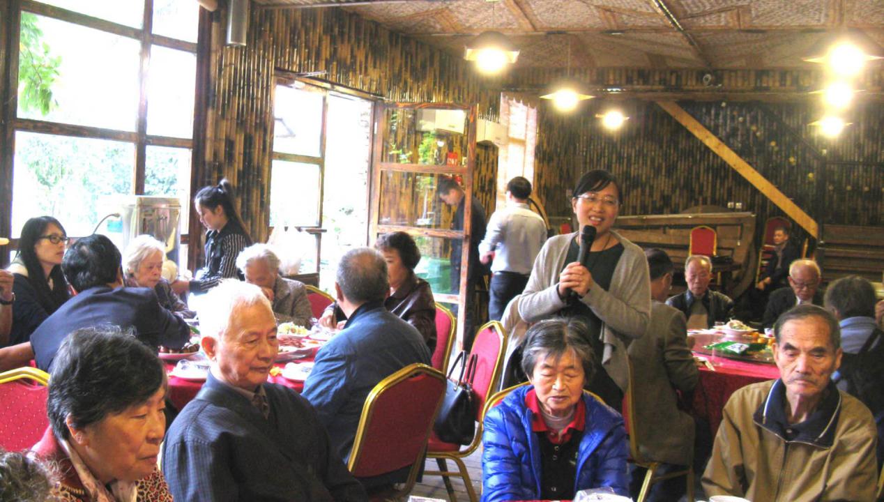 虽然进入初冬时节,但老同志们出游的热情高涨,大家在车上相互嘘寒问暖,到处洋溢着一种久违的浓浓春意,90岁的郁宝洁老师也兴致勃勃地参加了此次的活动。