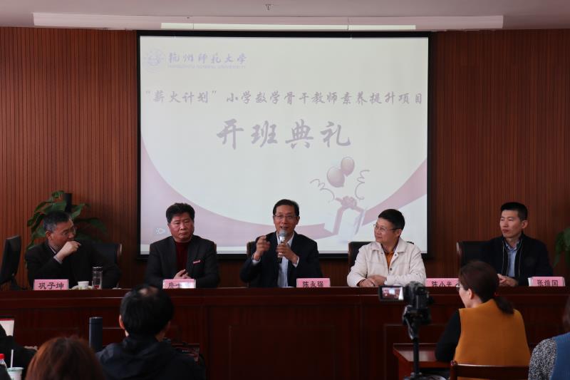 3月24日上午九点,开班典礼在杭州师范大学仓前校区理百家乐游戏 举行,由杭州师范大学理百家乐游戏 袁伟老师主持。杭州师范大学继续教育办公室陈永强主任、宝安区教育发展事务中心陈小光主任、杭州师范大学理百家乐游戏 院长詹士昌教授、宝安区教育科学研究院数学教研员张维国老师、杭州师范大学理百家乐游戏 教授兼本次项目负责人巩子坤教授以及41名学员参加了本次典礼。