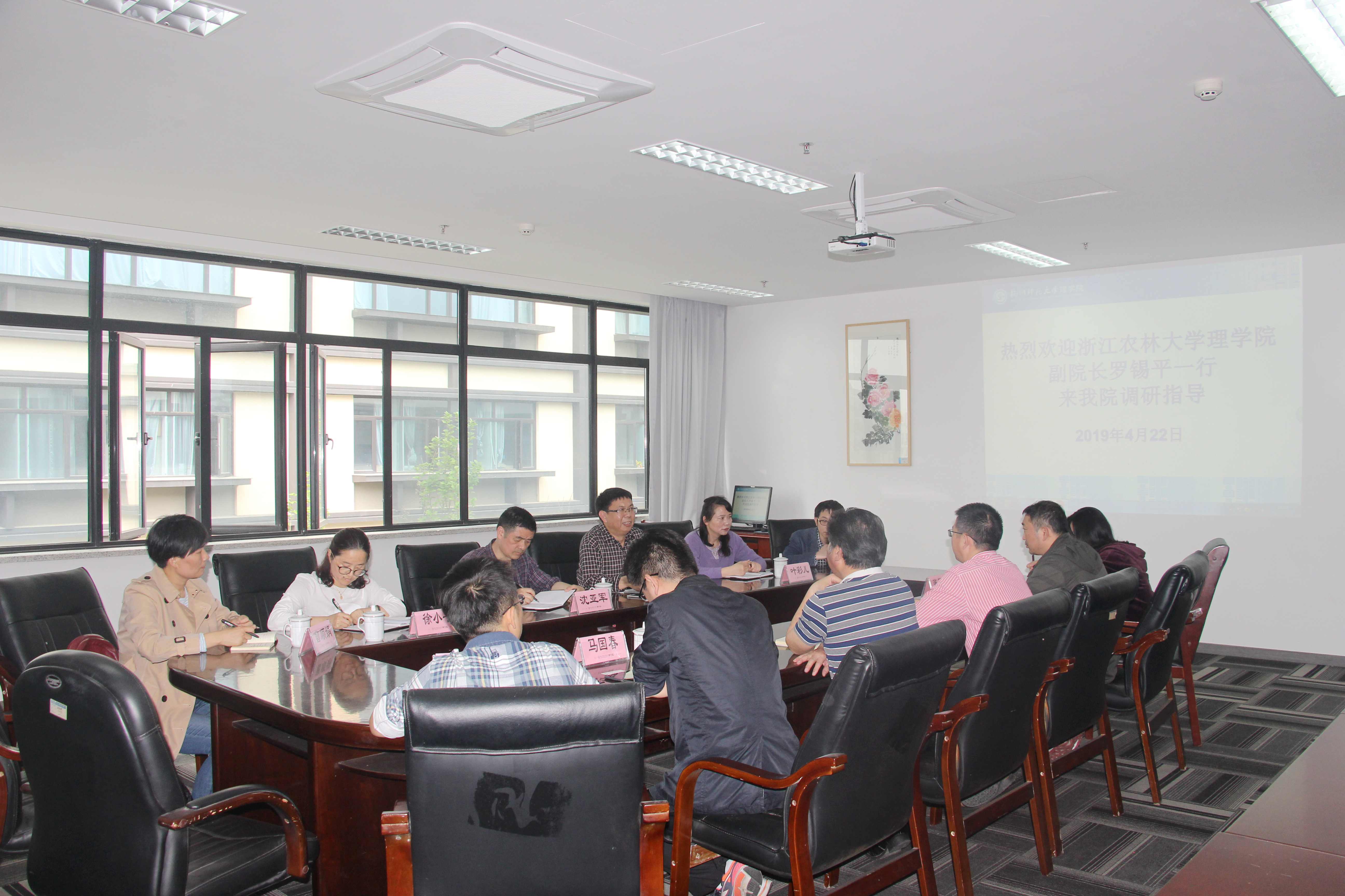 4月22日,浙江农林大学理百家乐游戏 副院长罗锡平教授一行6人来百家乐游戏-百家乐在线游戏调研工作,百家乐游戏-百家乐在线游戏院长詹士昌教授、副院长叶立军教授等人参与座谈。