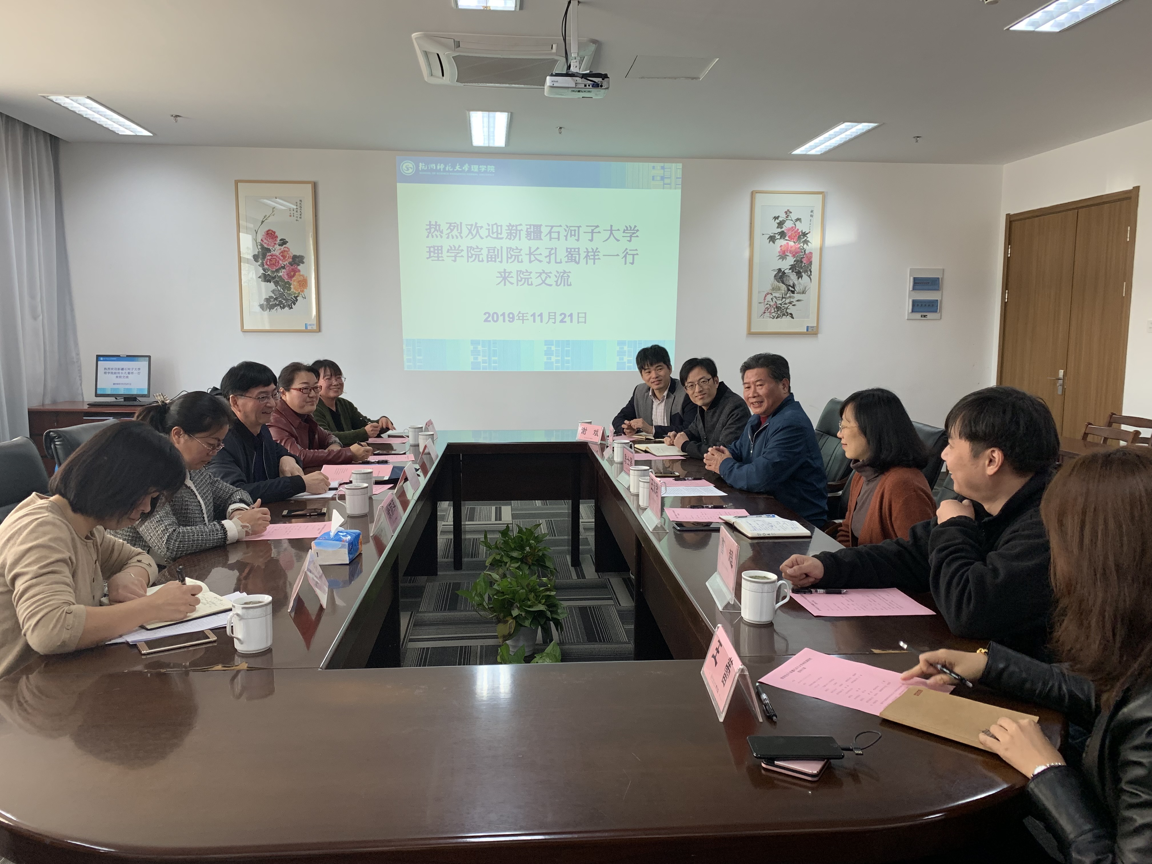 11月21日,新疆石河子大学理百家乐游戏 副院长孔蜀祥一行来百家乐游戏-百家乐在线游戏调研师范类专业认证工作。百家乐游戏-百家乐在线游戏召开座谈会,院长詹士昌、书记王淑君和副院长曹超等相关老师参与座谈。
