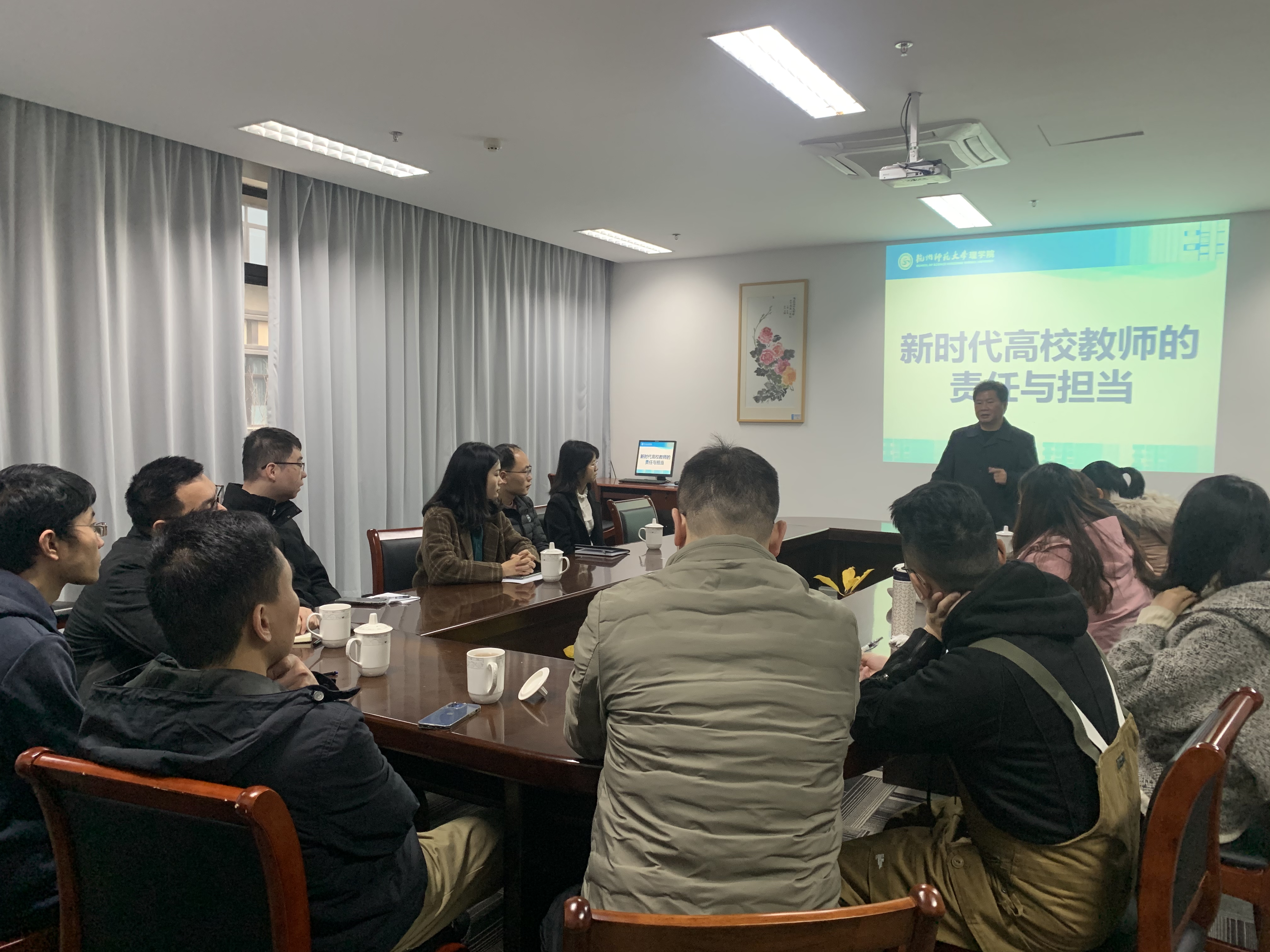 “新时代高校教师的责任与担当”课程主要围绕着新时代高校教师的使命、责任和要求展开。课上,詹院长简单介绍了学校与百家乐游戏 历史,强调了理百家乐游戏 前辈优秀的育人文化,期望新教师们有归属感与责任感;阐明了新时代人才培养要求特殊性,希望新教师们积极完成知识创新、学科建设、培养人才等方面的使命任务;强调了新时代的高校教师要在传道授业解惑中培养学生的品质、能力与素养,塑造一个完整的人。同时,詹院长也对新教师提了几点要求,希望大家政治素质过硬、主动承担使命与牢记第一责任。最后,詹院长强调了团队的力量,希望大家传承前辈的优秀育人文化,相互理解与尊重,不要落下任何一个学生,致力于培养更高层次的人才。
