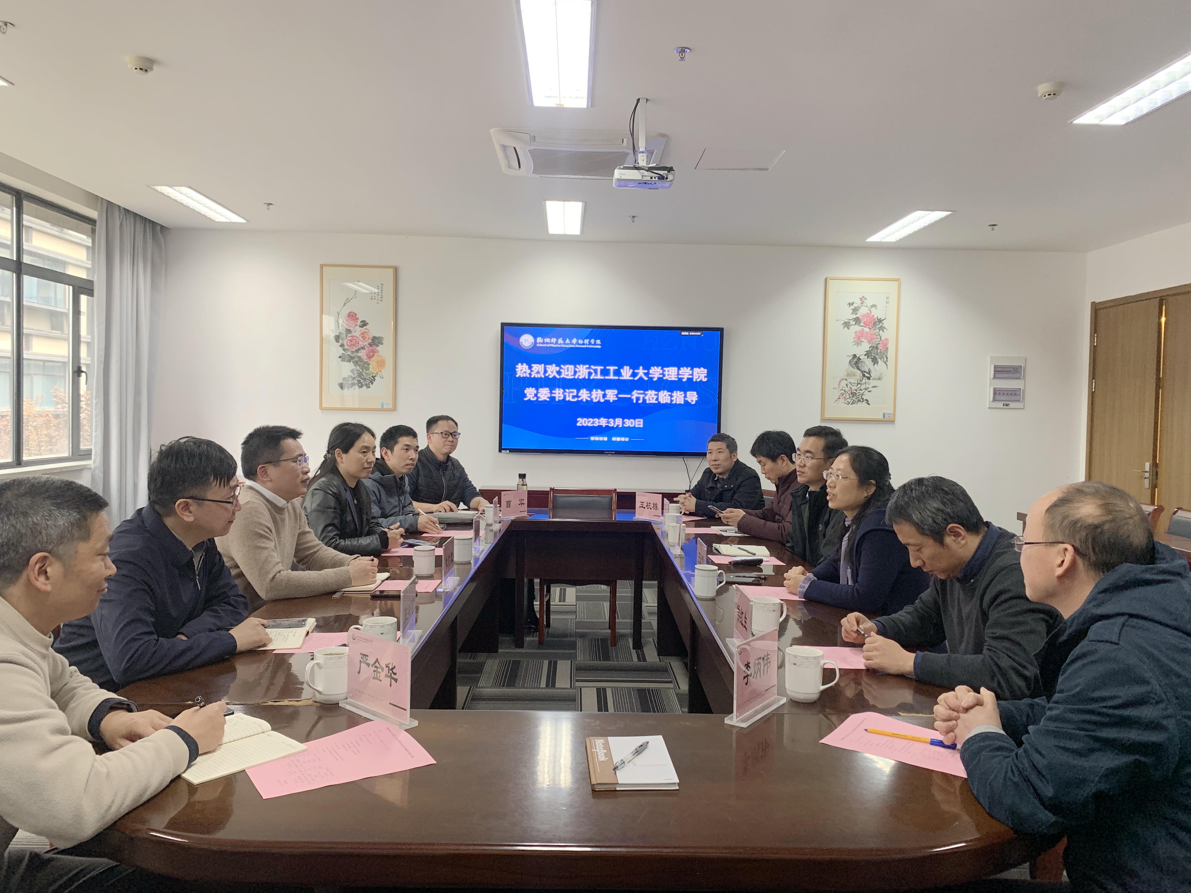 3月30日,浙江工业大学理百家乐游戏 党委书记朱杭军、副院长朱海燕教授、副院长王肖隆教授等一行六人前来百家乐游戏-百家乐在线游戏调研学科建设等工作。百家乐游戏 党委书记王淑君、副院长侯红生和孙哲教授、教师代表等参与调研座谈。会议由党委书记王淑君主持。