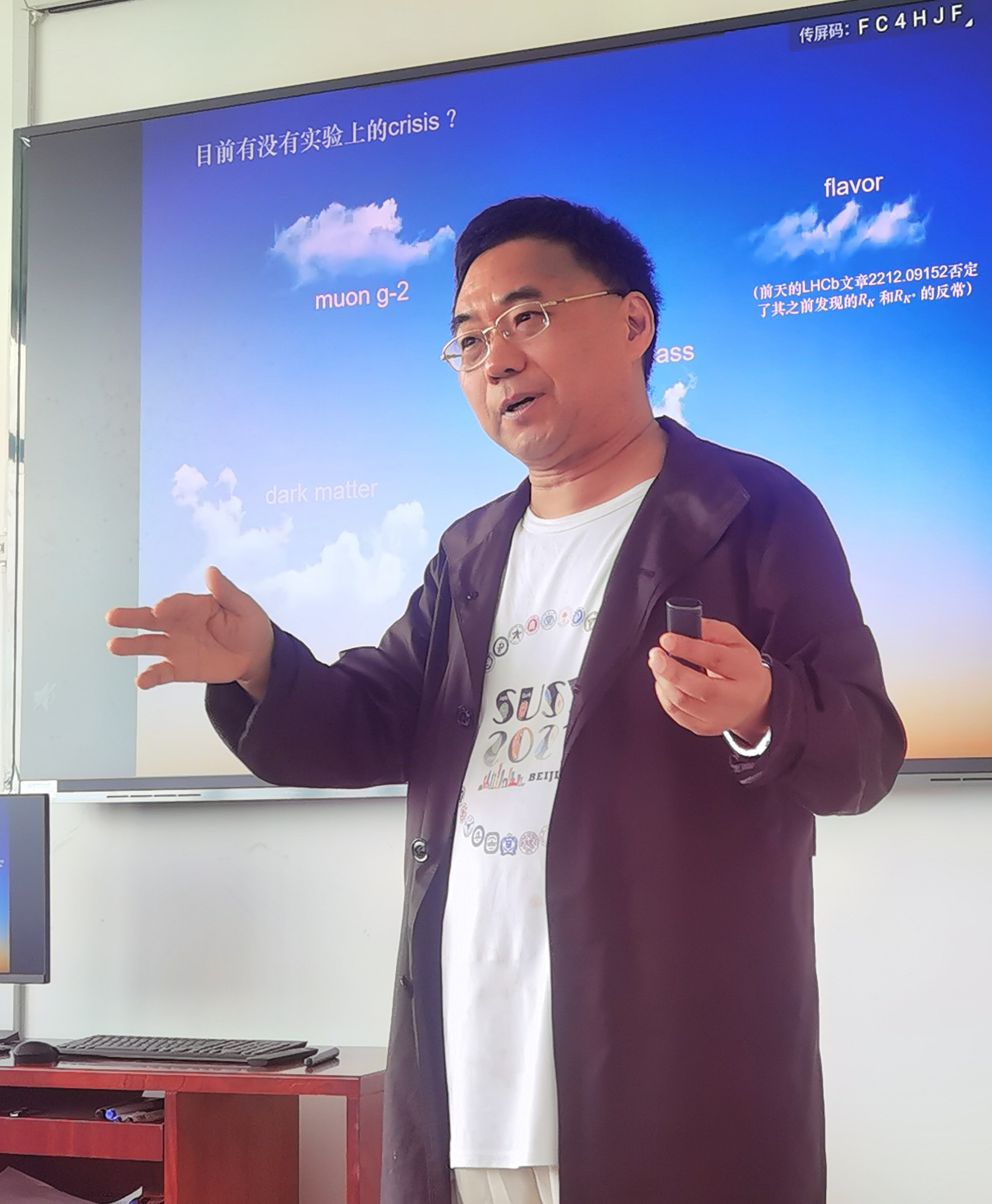 5月8日上午,百家乐游戏-百家乐在线游戏特邀中国科百家乐游戏 理论物理研究所杨金民研究员作题为《W-玻色子质量和新物理 》的学术报告。杨教授从2022年美国费米国家实验室对W-玻色子最精确的测量结果出发,介绍了W-玻色子的物理来源、标准模型对W-玻色子质量的理论预言、以及W-玻色子质量的最新实验测量对新物理特别是主流新物理理论-超对称和两个希格斯二重态的启示。