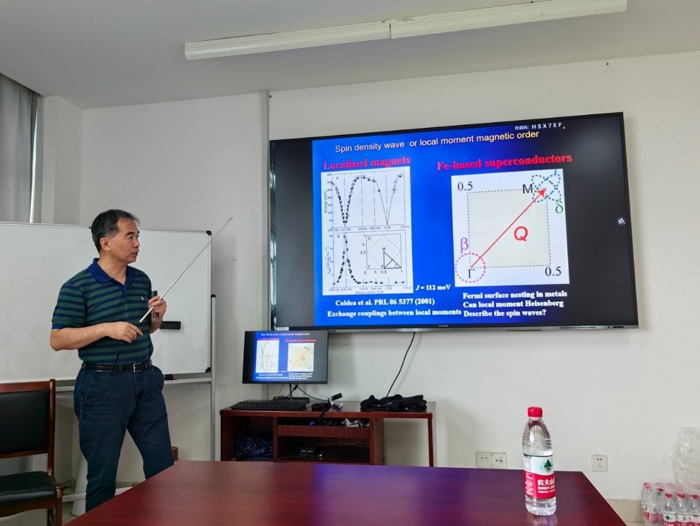 7月27日,美国莱斯大学、国际著名中子散射实验专家戴鹏程讲席教授莅临百家乐游戏-百家乐在线游戏开展题目为·“Competing itinerant and local spin interactions in kagome metal FeGe”的学术讲座。戴鹏程教授详细介绍并分享了他们最新的研究成果:利用非弹性中子散射探测FeGe材料中的新奇自旋激发谱,研究材料中CDW和canting温度的依赖关系[Nature 609, 490–495 (2022) ]。学术讲座吸引了来自浙江大学、西湖大学和我校凝聚态方向各位师生的极大兴趣,研究成果的前沿性和创新性也激发了大家热烈的讨论和探讨,并积极探索未来的合作方向和课题。