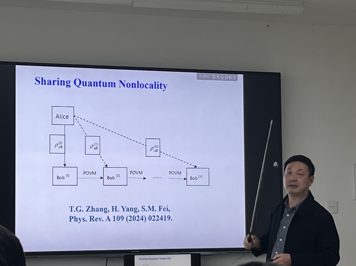 费教授的报告从量子态开始,深入浅出的介绍了量子纠缠的度量;真正三体量子纠缠的检测;k-可分量子态通过机器学习方法的判定;量子纠缠的单配性关系;链式不等式及非局域关联的检测等一系列量子力学基础问题的研究内容。