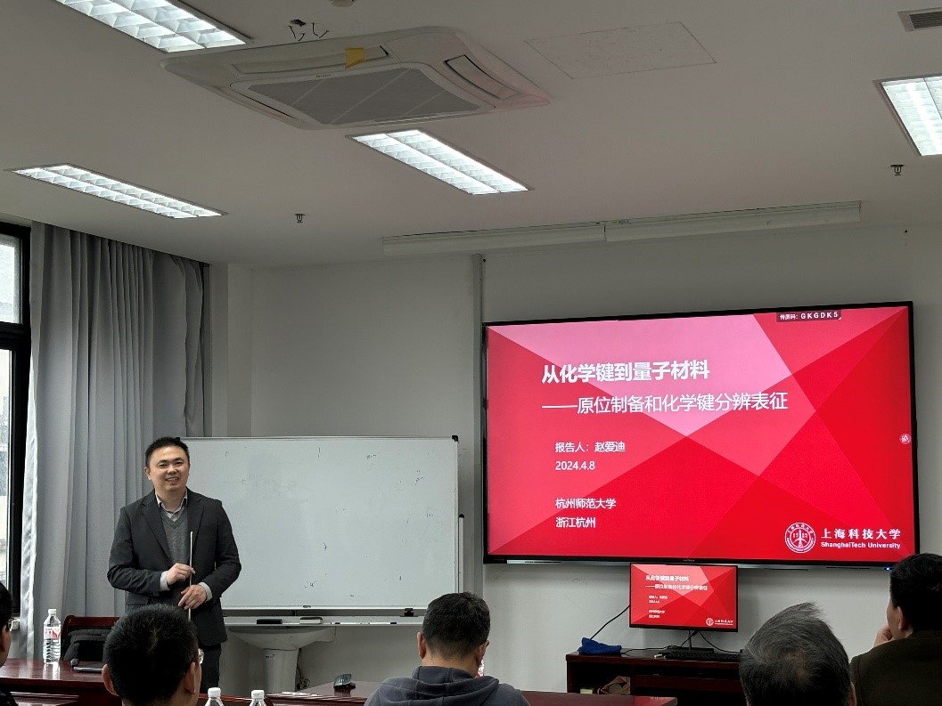 4月8日下午,百家乐游戏 邀请了上海科技大学赵爱迪教授做主题为“从化学键到低维量子材料”的报告。赵教授长期从事单分子科学、高分辨扫描探针显微学、低维量子材料原位制备等领域的研究,在Science、Nature Materials等SCI杂志上发表学术论文70余篇,研究成果曾入选中国十大科技进展。