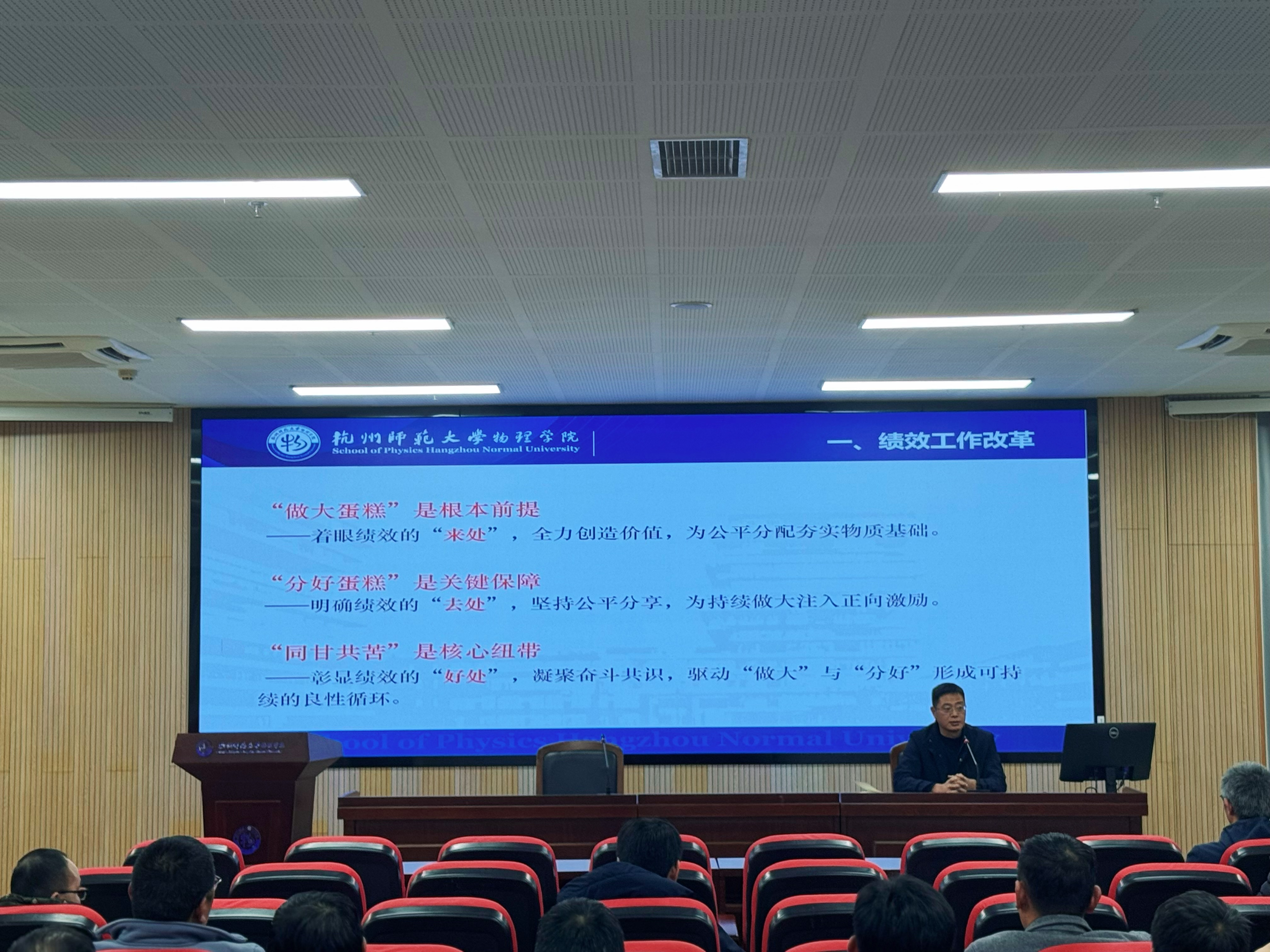 院长侯红生教授阐述了百家乐游戏 下一步发展的核心工作思路与重点。他强调,全院应紧密围绕学校争创“双一流”建设高校的部署和中心工作,谋划“十五五”发展目标举措,着力于“凝练方向、前沿交叉”,持续推动优势团队建设,加强高层次人才引育,激发青年教师科研活力,打造学科发展新增长点。侯院长重点就学校绩效工资改革精神以及百家乐游戏-百家乐在线游戏 绩效分配方案进行了解读,他强调,绩效工资改革旨在激发全体教师的积极性和创造力,希望全体教师立足工作实际,找准定位,更好投入百家乐游戏 科研、教学、育人和管理工作。